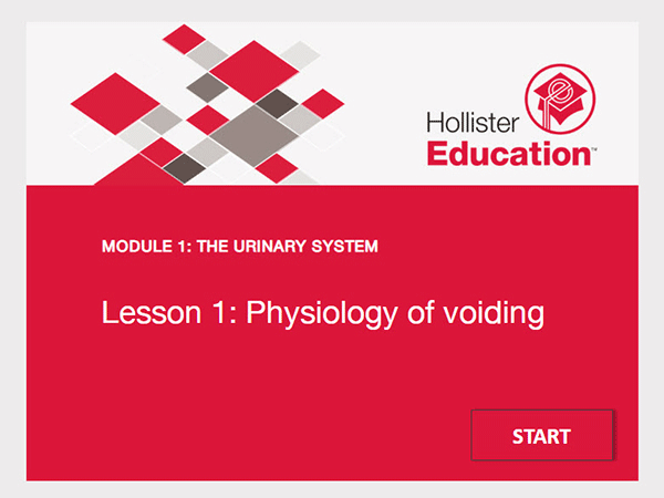 Hollister Education has developed “The Urinary System” online course to offer students, junior nurses, and other people working in healthcare settings who have some practical nursing experience, the opportunity to learn more about this specialized area of care. The five lessons can be viewed in any order, with ongoing activities and an assessment at the conclusion of each. Topics include: Physiology of Voiding, Upper Urinary Tract, Lower Urinary Tract, Urine, and Nervous System and Bladder Control. Each lesson contains a glossary of terms and reference resources.