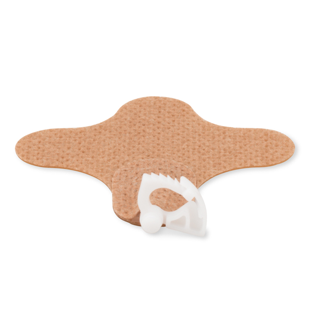 The suction tube attachment device from Hollister provides an easy-to-use alternative to tape for securing tubes and drains. It features a FlexWear™ skin barrier to help protect the skin and an adjustable clamping mechanism to allow for easy tube positioning and better access for site care.